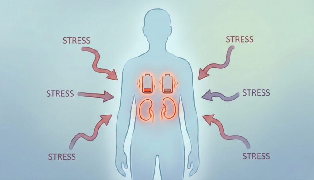 現代人は、仕事のプレッシャー、人間関係、睡眠不足、そしてスマホからの絶え間ない情報など、24時間ストレスにさらされています。 副腎は休むことなくコルチゾールを出し続け、ストレスと戦い続けますが、やがて限界を迎えます。