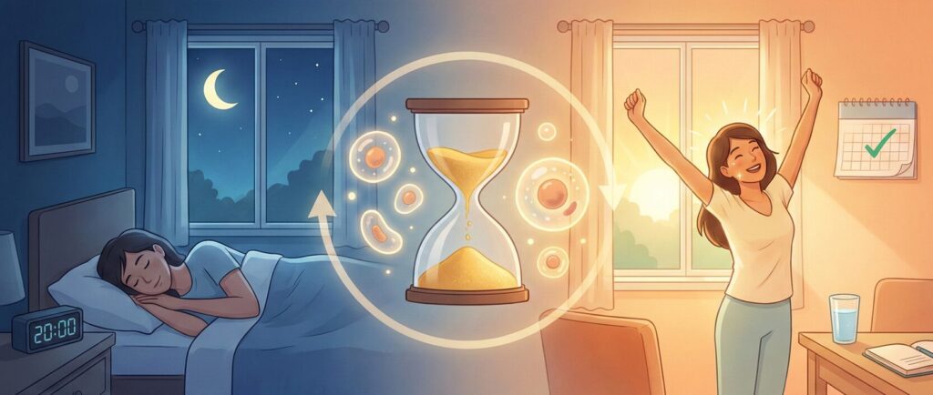 この記事では、科学的根拠に基づいたオートファジーの仕組みと、誰でも無理なく続けられる16時間断食の具体的なメソッドを徹底解説します。