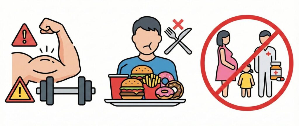 成長期の子供、妊婦さん、持病があり服薬中の方、過去に摂食障害の経験がある方は、自己判断で行わず医師に相談してください。