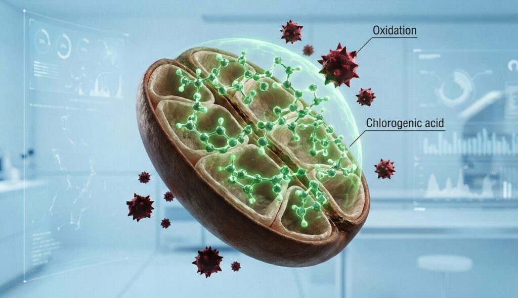 コーヒーに含まれるポリフェノールの一種「クロロゲン酸」。これがアンチエイジングの鍵です。 私たちの体は、呼吸をするだけで酸化(サビ)していきます。これが老化の正体。クロロゲン酸は、この酸化を防ぐ強力な抗酸化作用を持っています。