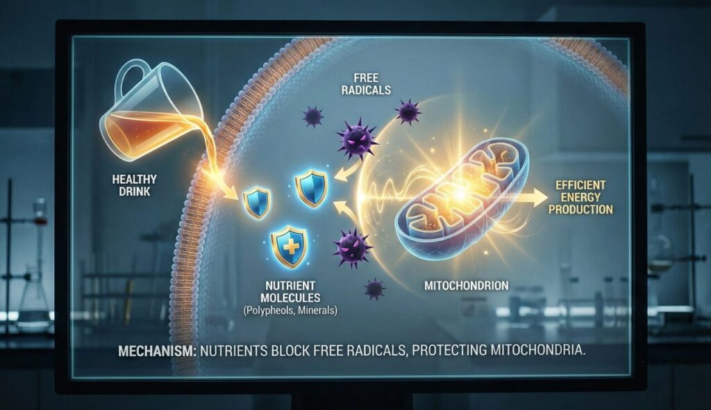 特定の飲み物に含まれるポリフェノールやミネラルは、ミトコンドリアの働きを助けたり、発生してしまった活性酸素を除去してミトコンドリア自身を守ったりする役割を果たします。液体である飲み物は、固形物の食事に比べて消化吸収が早く、成分をダイレクトに細胞へ届けやすいというメリットもあります。